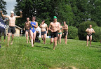 Dunkle Wolken am Freitagabend ließen schon böses für den Samstag erahnen. Unsere Befürchtungen wurden aber bei weiten noch übertroffen. Aufgrund strömenden Regens, Sturmböhen und eine kräftige Temperaturabkühlung ließen musst der W4FunTraiathlon auf Sonntag verschoben werden. Kurz entschlossen wurde die 4 Disziplin - Grillen & Biertrinken auf den Samstag vorverlegt - was sich bei einigen Teilnehmern am nächsten Tag durchaus bemerkbar machte. Einige hatten eigentlich damit gerechnet das auch am Sonntag Odin einen Wettkampf unmöglich machen würde uns somit nur die 4 Disziplin als Einzelwertung gewertet würde....Wieder erwarten erwachten wir aber am Sonntag morgen bei blauen Himmel und angenehmen Temperaturen - dem eigentlich Wettkampf stand somit nichts im Wege - und Energien wurden ja genug getankt...also auf zum Schwimmen. Wieder einmal mit einer geänderten Streckenführung. Vom traditionellen Start wurde dieses Jahr ein Dreieckskurs insgesamt 3 mal geschwommen. Unsere Kärnten Finisher Andi Freitag & Florian "Floh" Binder mussten sich in diesem Bewerb noch etwas überraschen Eva & Mitch geschlagen geben die eine phantastische Schwimmzeit hinlegten. Dicht gefolgt dann unserer Kärtner die in weiterer Folge das Radrennen gemeinsam in Angriff nahmen. Nach und nach tropfelten in wahrsten Sinne des Wortes die Schwimmteilnehmer ein. Am Schluss des Feldes die üblichen Verdächtigen die hier nicht näher genannt werden müssen :-). Glücklicherweise wurde wie es fast schon traditionell ist in weiterer Folge in einer größeren Radgruppe gefahren die sich gegen Ende des Rennens noch einmal aufteilte. Im abschließenden Laufbewerb wurden die Platzierungen freundschaftlich untereinander ausgemacht. Unserer Kärnten-Finsiher hatten am Schluss die Nase vorne und wurden ex equo Erste. Aufgrund der umgekehrten Reihenfolge zählte der W4-FunTriathlon 2009 sicherlich für die meisten Teilnehmer zu einem der härtesten. Umso verwunderlich das sich so eine große Anzahl von Freunden des Triathlon Sports für den diesjährigen FunTriathlon begeistern konnten. Fest steht - 2010 wieder in normaler Reihenfolge - so Odin mitspielt zumindest....